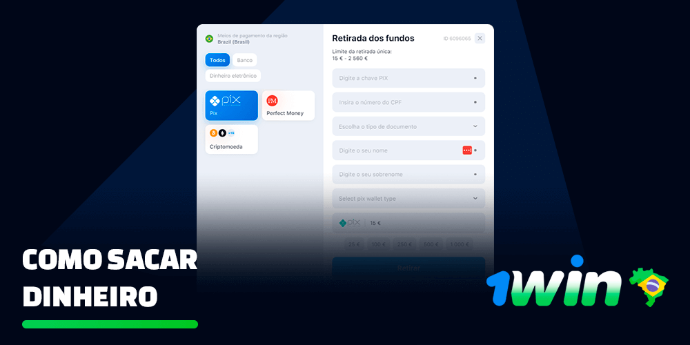O valor mínimo que pode ser enviado para sua carteira de jogos é de R$ 5. Antes de fazer seu primeiro depósito, leia atentamente como fazer saques na 1win.